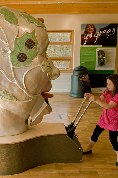 Commission for Dalby Forest Visitor Centre in North Yorkshire working with Orange Box Design to produce an interactive piece with Solar and muscle powered movement and illumination, 2007