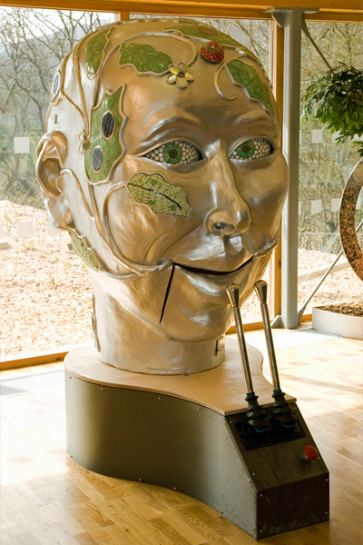 A commission for Dalby Forest Visitor Centre in North Yorkshire. An interactive piece with Solar and muscle powered movement and illumination. Created in 2007.